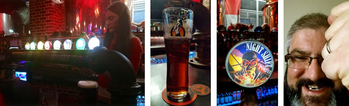 The lady behind the bar was extremely friendly and so knowledgeable about beer, everything from the process to the ingredients. She could tell me where each of the hops used were grown, the type of hops used, how the flavours are created. An absolute mine of beery information and in the end gave me a couple of rising sons engraved glasses to take home. Now be honest, you don't find much of that these days, it was both impressive and refreshing.